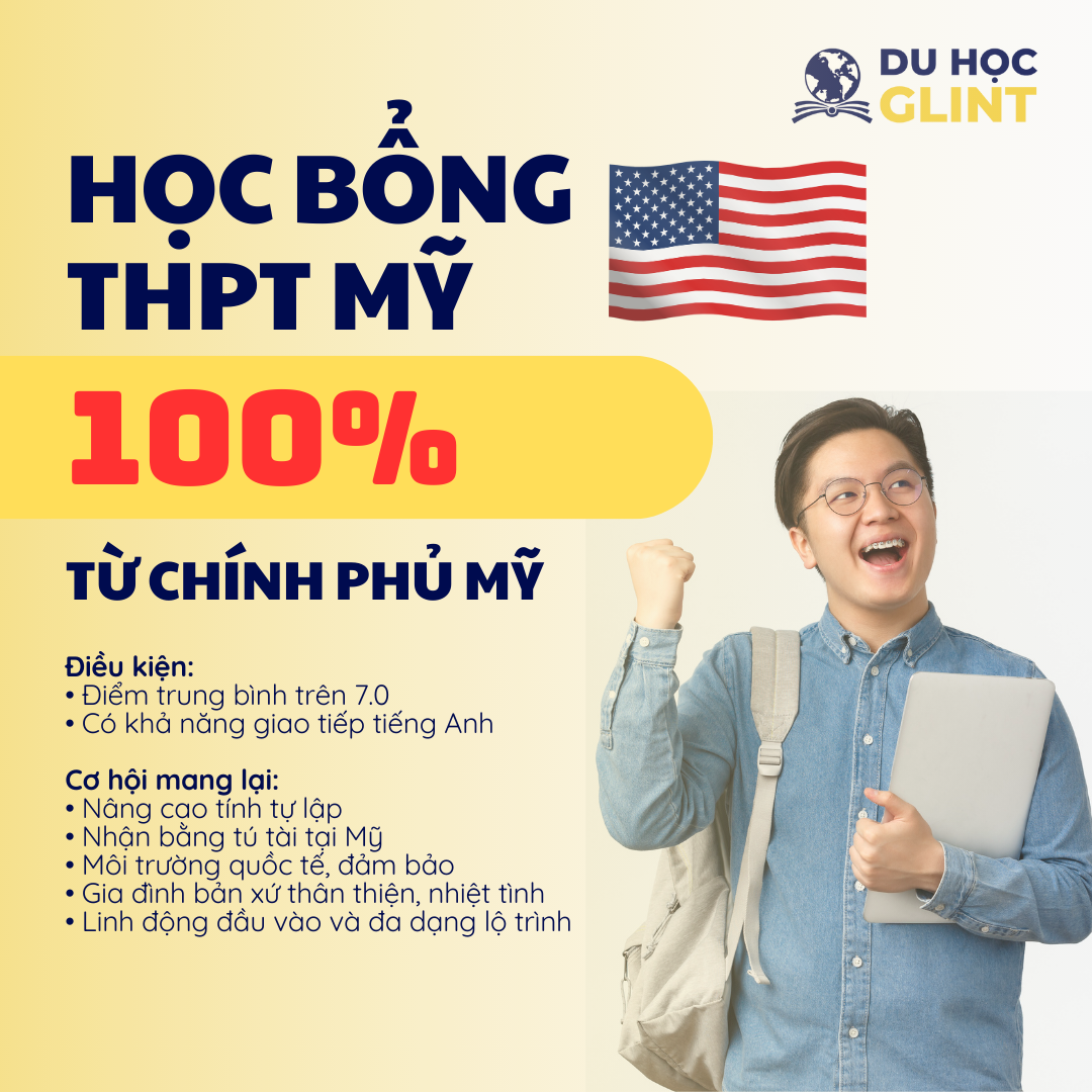 Chương trình học bổng 100% trung học công lập do Chính phủ Hoa Kỳ tài trợ theo diện visa J1 là cơ hội hiếm có dành cho các học sinh độ tuổi THPT được học tập tại Mỹ trong 1 năm, trải nghiệm văn hoá Mỹ, nâng cao tiếng Anh và phát triển kỹ năng mềm, tự lập và nhận thức.